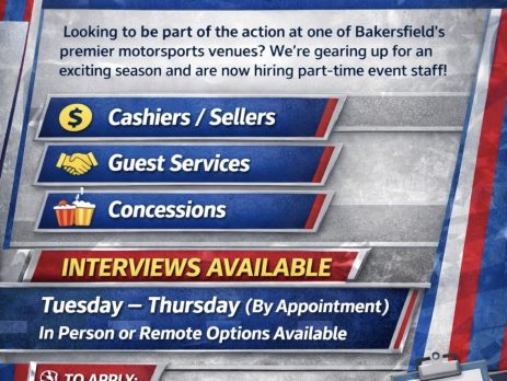🏁 Kern Raceway is Hiring – Part-Time Event Staff! 🏁 Looking to be part of the action at one of Bakersfield’s premier venues? We’re gearing up for an exciting season and are now hiring part-time event staff! Open Positions: • Cashiers / Sellers • Guest Services • Concessions Interviews Available: Tuesday – Thursday (By Appointment) In Person [...]