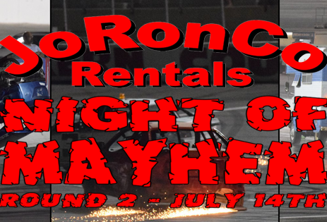 Round #2 of the JoRonCo Night of Mayhem and Destruction is set for Saturday Night July 14th and it will be a big one! On the schedule are all your destruction favorites! Two Skid Plate Races and The RV Water less Boat Race plus a full slate of racing with [...]