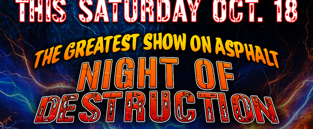 Gates open for “Night of Destruction” this Saturday at 4 pm. The on-track driver autograph session will kick off at 5:45 pm, and opening ceremonies will commence at 6:30 with racing action scheduled to start at 7 pm.
